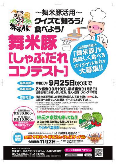 11月2日に行われる「第11回やまのべ・まるごと・フェスティバル」において、今年度は舞米豚【しゃぶだれコンテスト】を開催します。