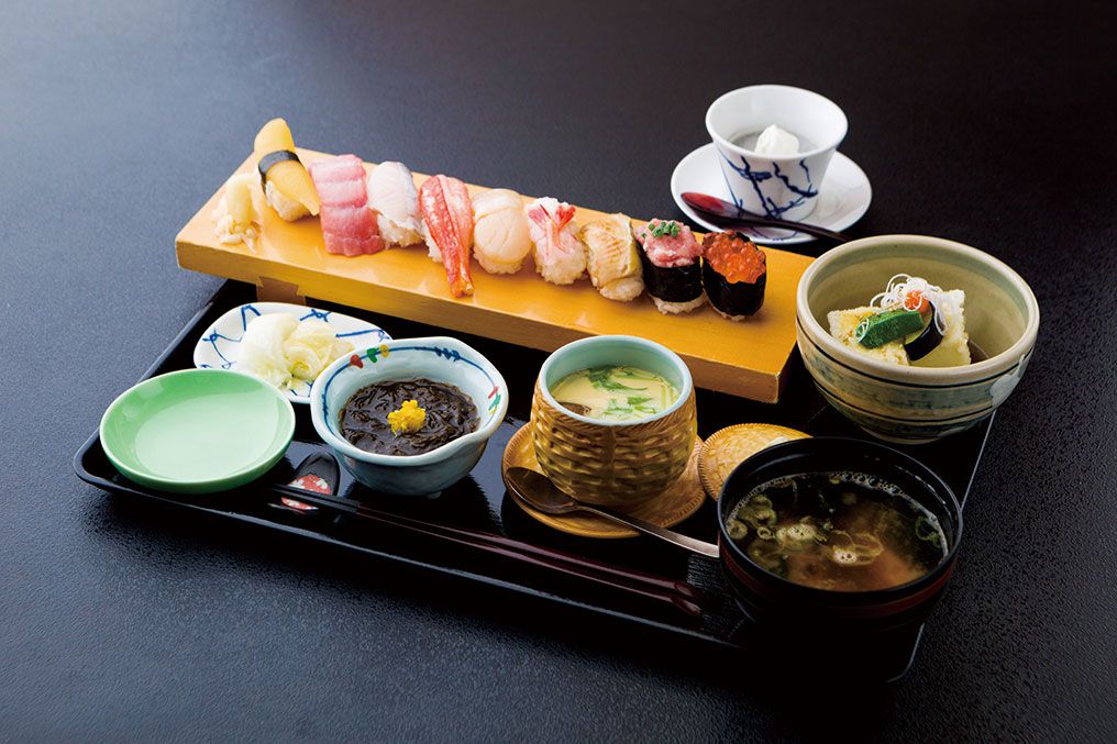 平日のお昼の時間はお得なランチメニューがあります。お寿司の他に数種類の小鉢がついて大満足なメニューになってます。夜は要予約で各種宴会も承ります。出前、法事、祝事なども承ります。新鮮な魚介でお待ちしております。