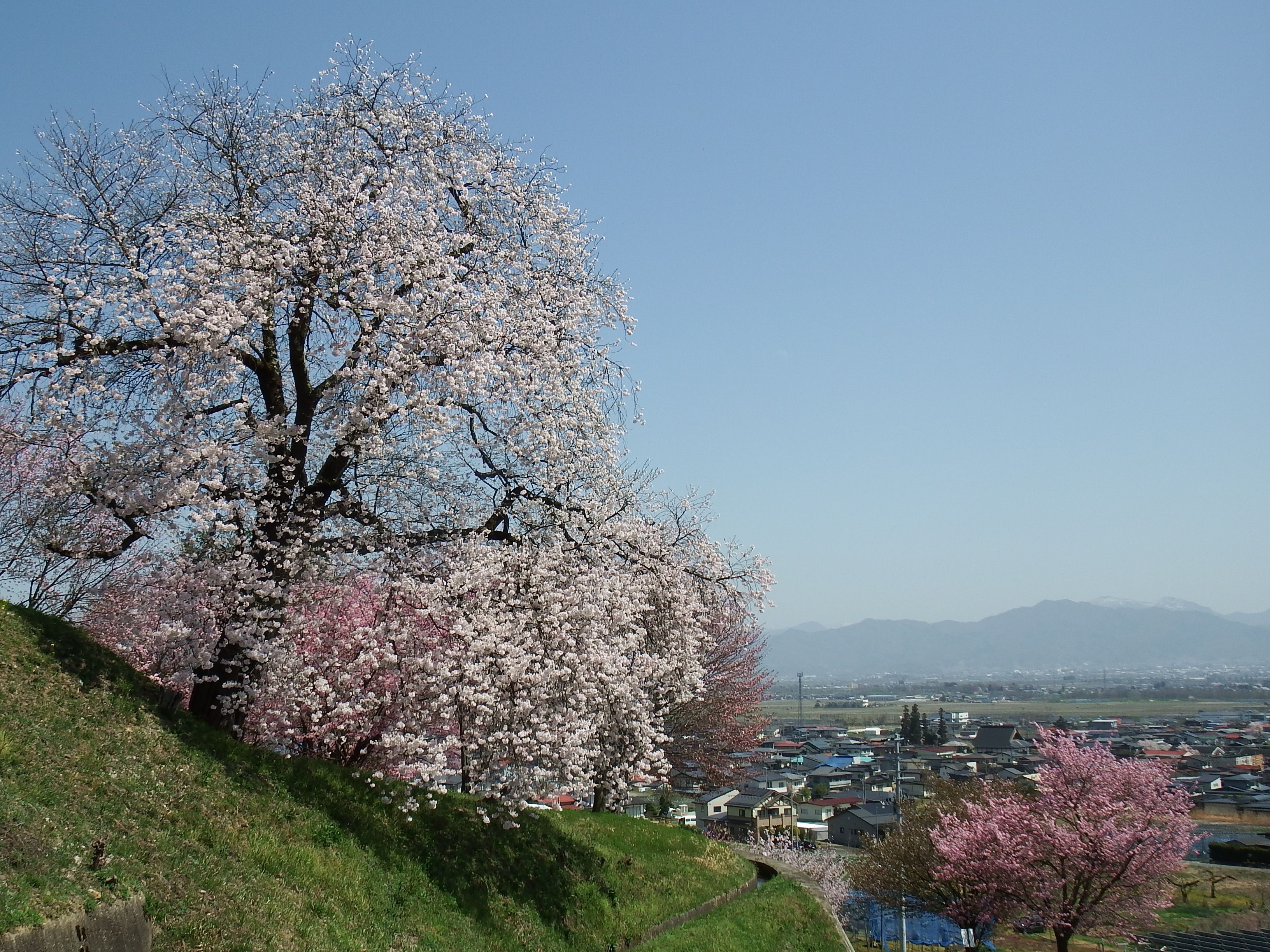 山辺町大寺地区の高台にあり、蔵王山系と山形市街地が見渡せる公園。約300本の桜があり桜の名所となっています。秋には彼岸花も咲きます。
