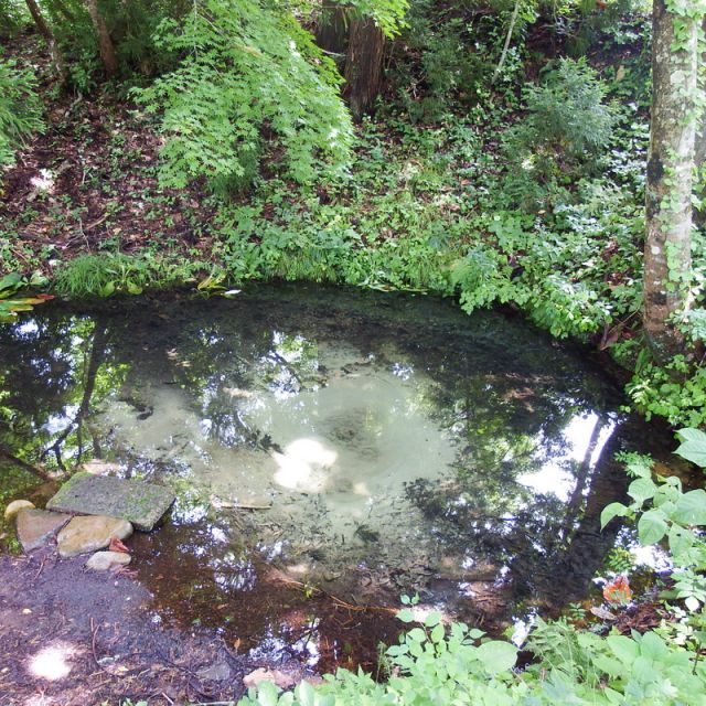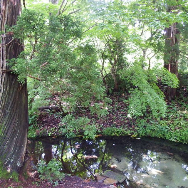 白鷹山の麓にある嶽原地区へ行く途中の木々に囲まれたくぼ地にこの湧水があります。