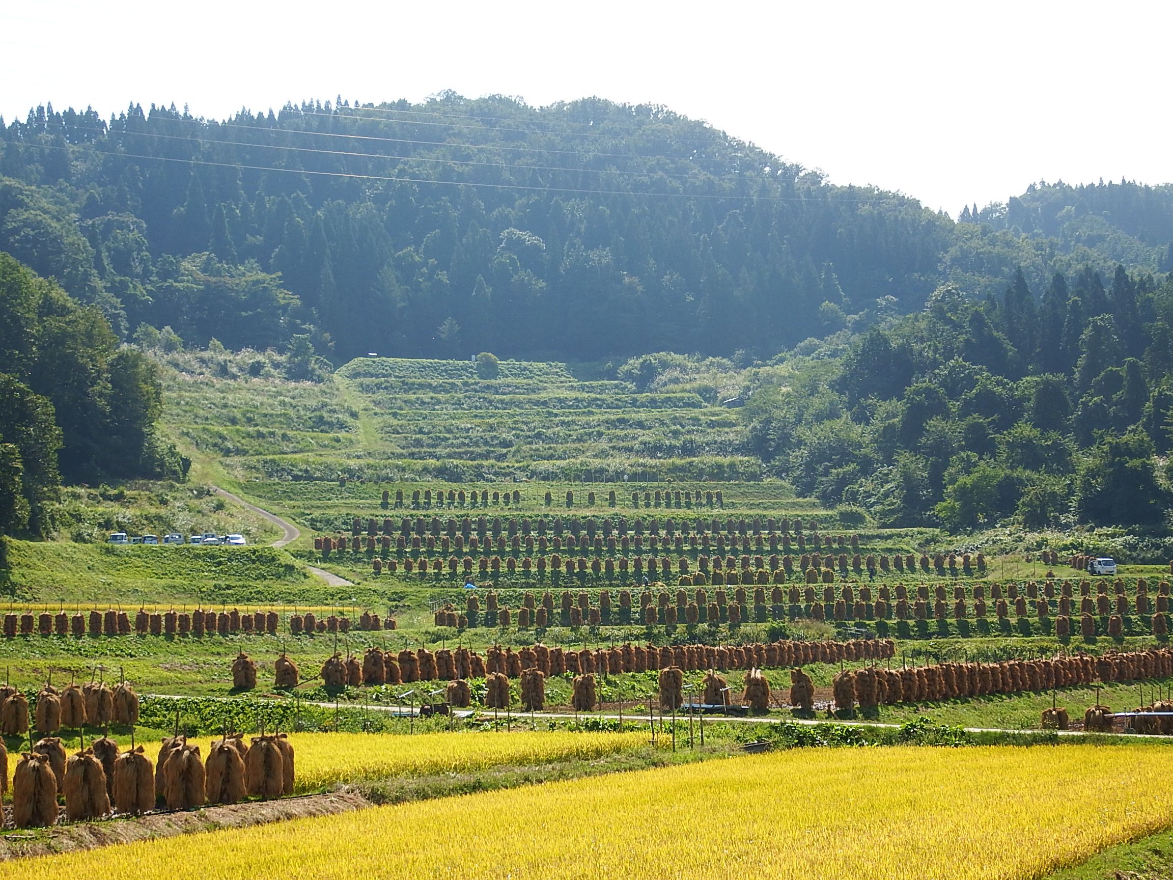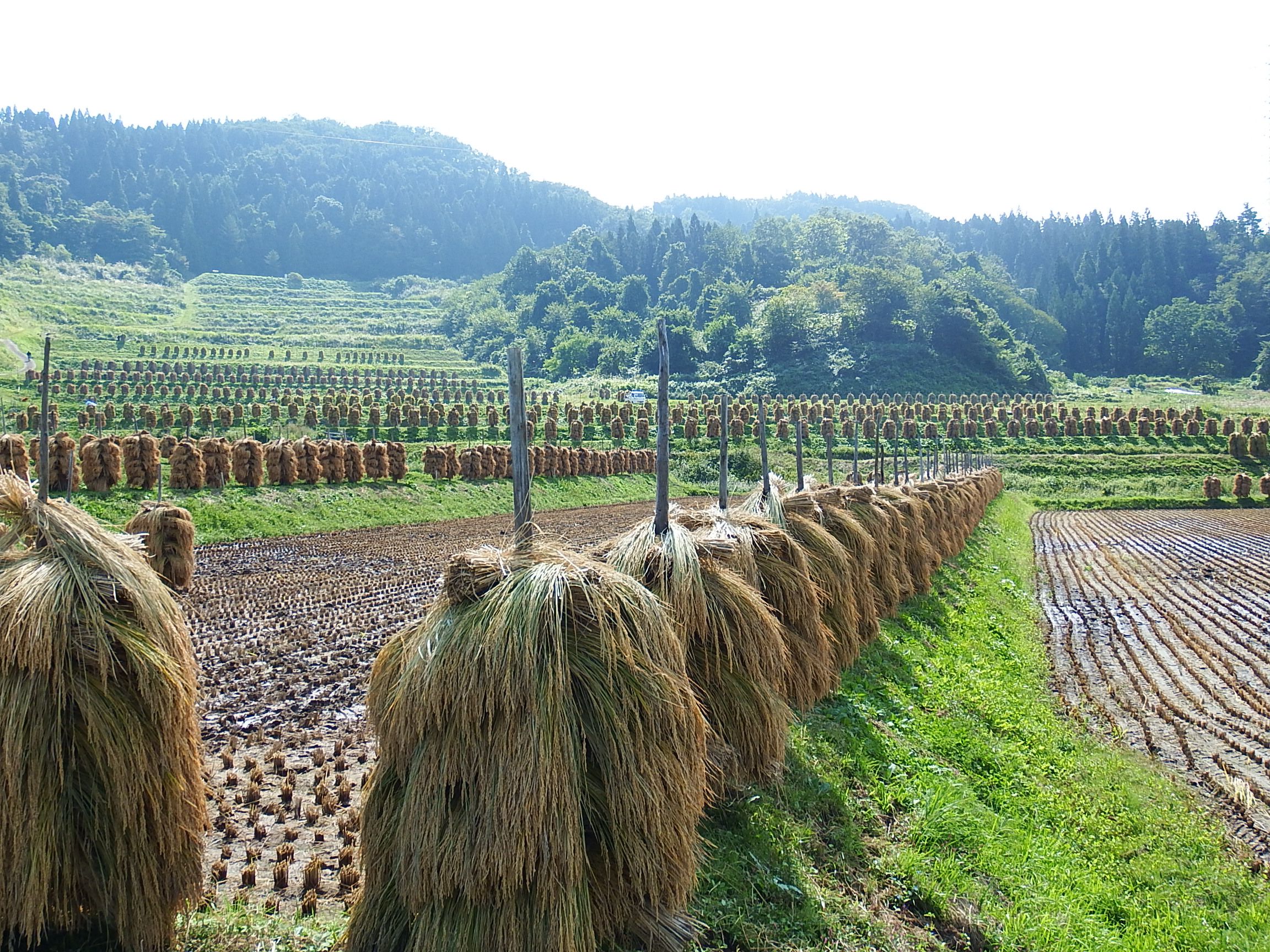 昔ながらの田園風景を残す大蕨の棚田は、平成11年に農林水産省の「日本の棚田百選」に認定されました。山の斜面に広がる棚田は、四季折々に美しい表情を見せてくれます。秋には刈り取った稲を天日干しする稲ぐいが立ち並びます。黄金食の稲ぐいが規則正しく並んだ風景は圧巻です。