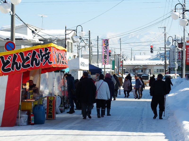 縁起物のだんご木や初あめ等の出店で大賑いが予想される江戸時代から続く伝統的な催し。舞米豚のとん汁、甘酒の無料振舞いが行われます。
