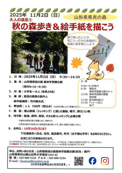 県民の森「秋の森歩き&絵手紙を描こう」を開催します!